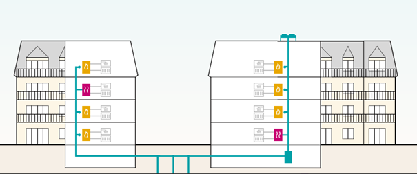 - Zasnova omogoča, da se stanovalci priključujejo individualno, kadar želijo – kar je pomembna prednost v večstanovanjskih stavbah z različnimi lastniki.