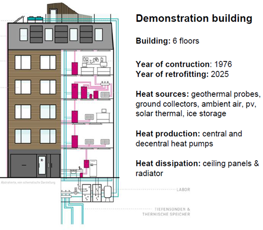 Ta projekt povezuje štiri stavbe – dve iz 19. stoletja, eno iz 80. let in eno novogradnjo – v skupen energetski sistem.